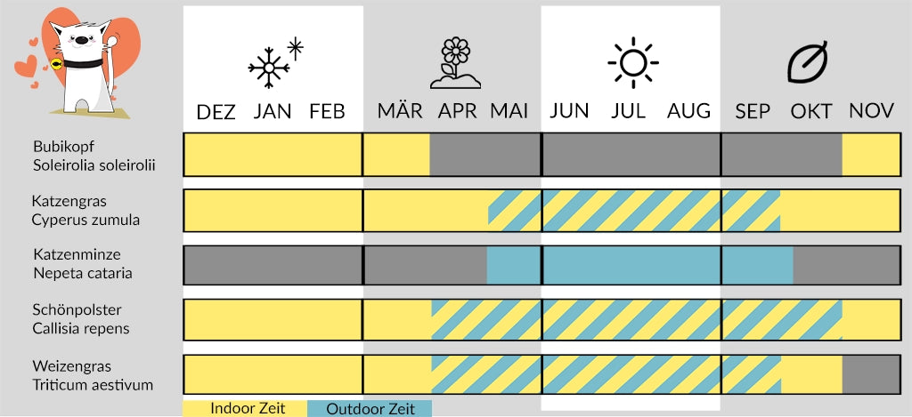 Wir zeigen dir, welche Pflanzen du im 6-Wochen-Rhytmus für deine Katze nachbestellen solltest