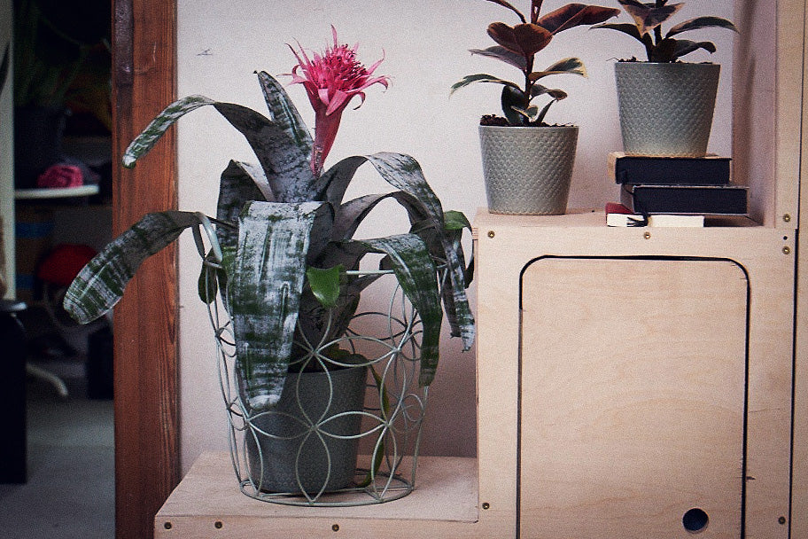 Bromelien haben besondere Vorlieben, was das Gießen betrifft. In ihrer südamerikanischen Heimat wachsen sie als Aufsitzerpflanzen auf Bäumen oder Felsen und nehmen einen Großteil des Regenwassers über ihre Blätter auf. Daher lieben sie es auch bei uns, wenn beim Gießen etwas Wasser mit in die Rosetten geben wird. Die Lanzenrosette gehört zu den Ananasgewächsen, wie man an ihren charakteristisch geformten Blättern sehen kann.