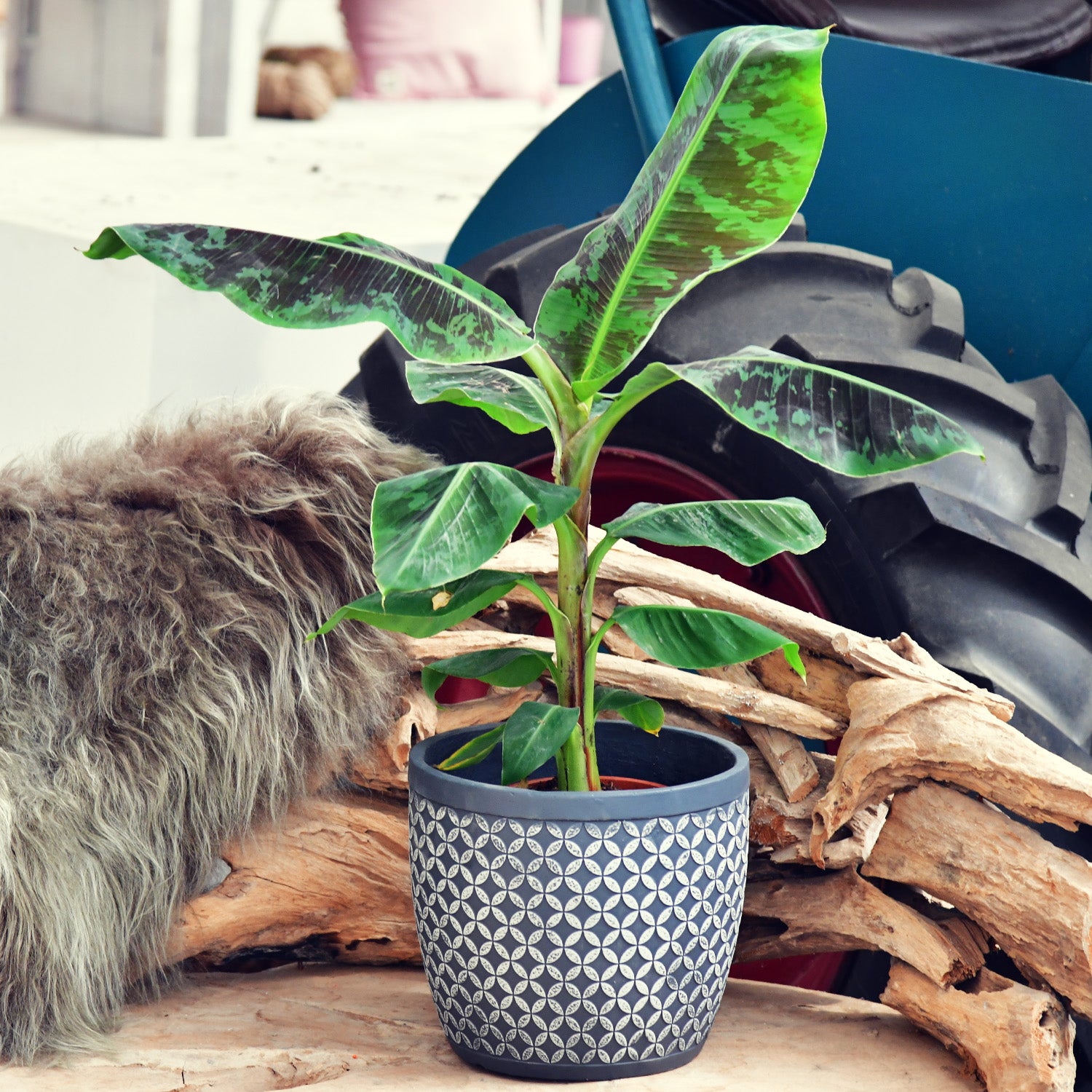 Die Zwerg-Essbanane oder auch botanisch Musa Dwarf cavendish ist eine tropische Pflanze, durch die du eine außergewöhnliche Innenraumbegrünung bekommst. Sie sieht nicht nur toll aus, als Kübelpflanze kann sie sogar essbare Früchte entwickeln. Die großen, kräftig grünen Blätter haben mit dunklen Farbaspekten eine besondere Färbung.