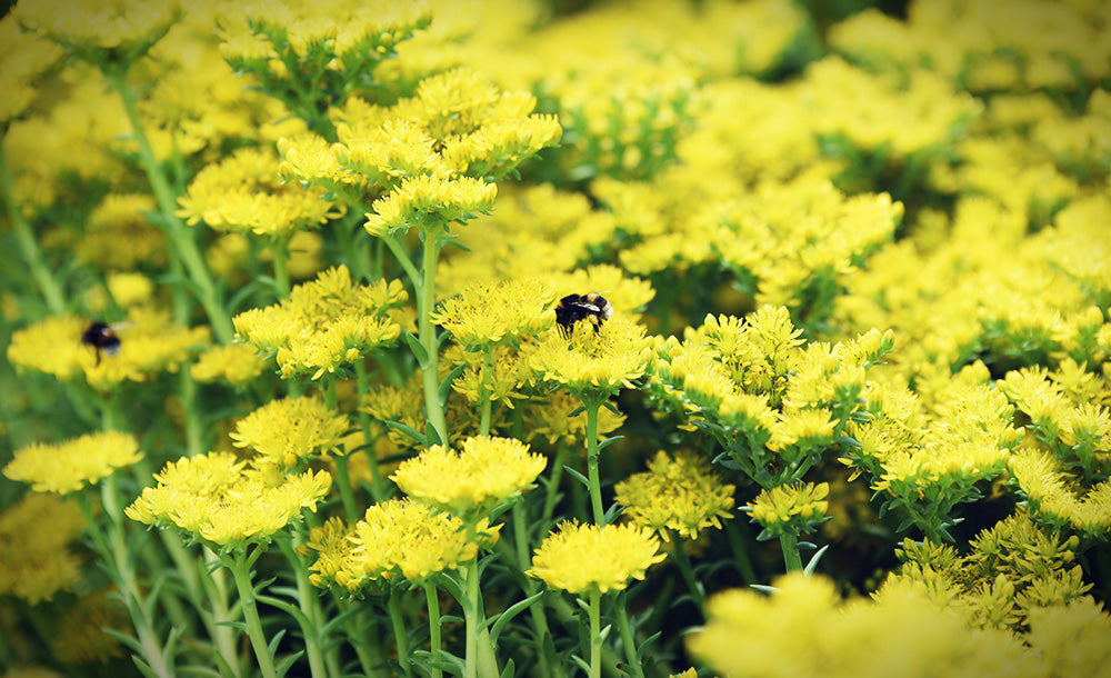 In der Blütezeit im Juli und August ist Sedum ein absoluter Bienenliebling. Da ihre Blüten voller Nektar sind lockt sie Bienen und Schmetterlinge in Scharen an und es kann vorkommen, dass die ganze Pflanze förmlich summt. Dieses Geschehen zu beobachten ist ein wahres Spektakel. Zudem kannst du mit dieser Pflanze dem bedrohten Bienenstand und der Natur etwas Gutes tun.
