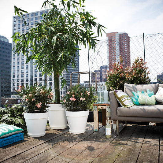 Neben der klassischen Bepflanzung von Balkongeländern kann man in der Balkongestaltung bereits viele Ideen zur Bepflanzung in Kübeln oder auch Pflanzkörben finden. Viele mediterrane Pflanzen sind aktuelle im Trend und lassen auf dem Balkon schnell Urlaubsfeeling aufkommen. Hier kannst du dir bei uns deine neuen Balkonpflanzen bestellen. Von kleinen Bäumchen für den Tisch bis hin zu großen XXL Bäumen für Sicht- und Sonnenschutz ist alles möglich. Dafür brauchst du aber natürlich auch das passende Balkonzubehör. Schließlich würde die Balkone ohne die richtigen Töpfe kahl aussehen und schnell dreckig werden. Um das zu vermeiden, hast du verschiedene Optionen, um deine Pflanzen für Draußen in Gefäßen zu pflegen. Hier unsere Tipps, die du bei der Bepflanzung von Outdoor-Kübeln beachten solltest: