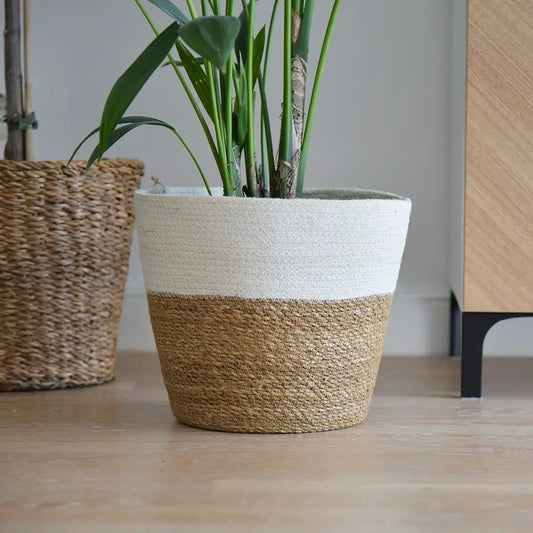 Dabei folgen wir unserer Philosophie, Kunststoff in jeglicher Hinsicht zu vermeiden. Sowohl beim Transport und Verpackung, als auch bei der Materialauswahl der Töpfe. Bei uns wird bei allen Töpfen auf nachhaltige Materialiengesetzt. Vornehmlich bestehen die Übertöpfe aus Ton, Bast oder Seegras. Wenn du bei uns Töpfe aus Kunststoff entdeckst, dann ist das Material aus recycltem Kunststoff hergestellt. So haben auch diese Übertöpfe eine gute Bilanz in Sachen Nachhaltigkeit. Wir prüfen jedes Produkt sehr genau, bevor wir es dir anbieten. Du kannst dir also sicher sein, dass die Topf-Variationen, die du bei uns findest, unseren Standards an Nachhaltigkeit entsprechen.