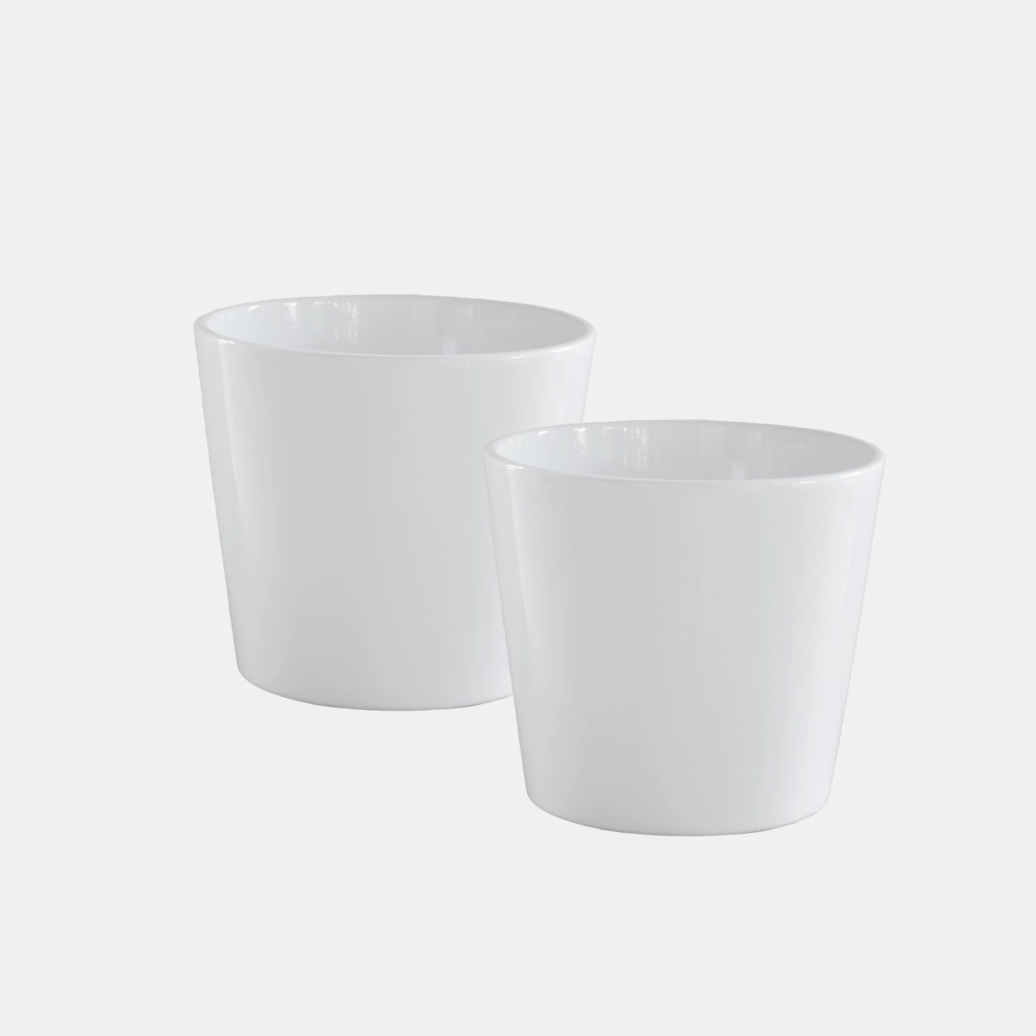 Statte deine zwei Pflanzen im 13-15cm Pflanztopf mit einem Duo des beliebten Übertopfes Tara aus. Der klassisch weiße Keramiktopf ist hergestellt in Deutschland und sehr robust. Die weiße Lackierung macht ihm zu einem schlichten, aber hochwertigen Accessoire zu deinen neuen Zimmerpflanzen.