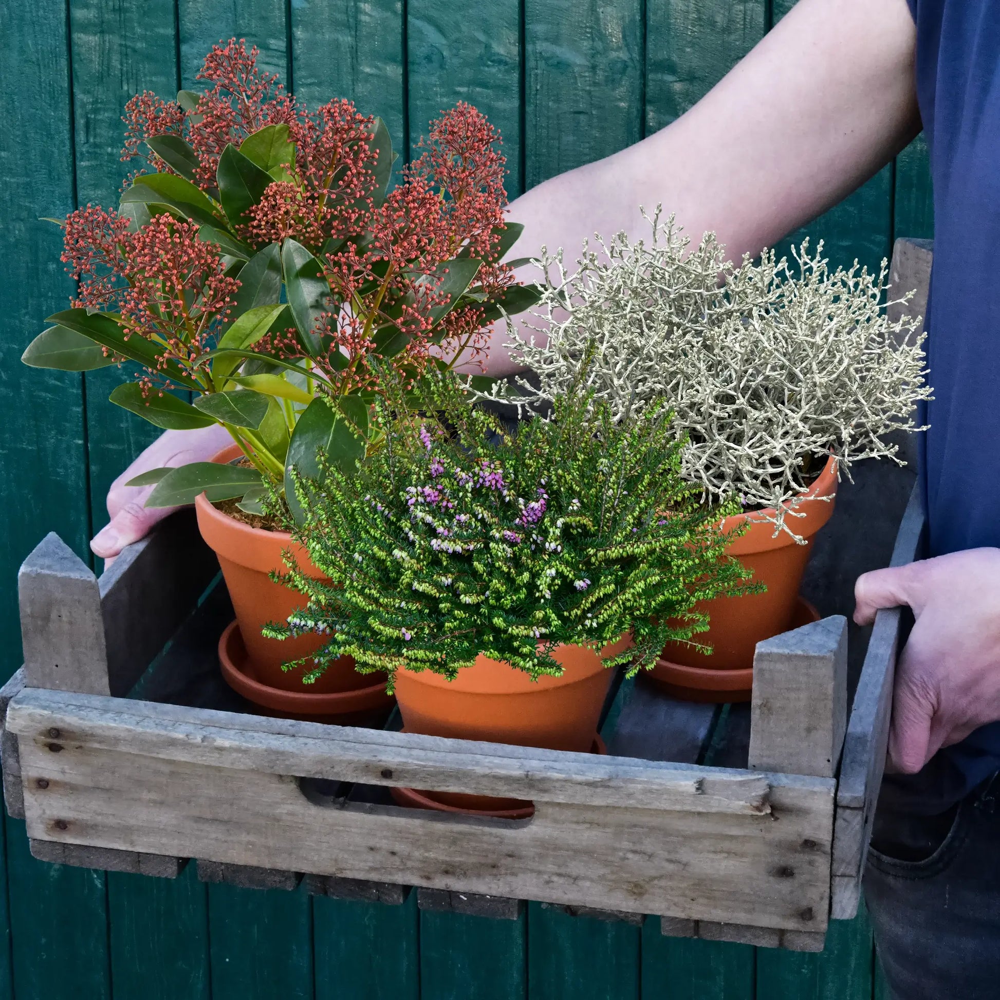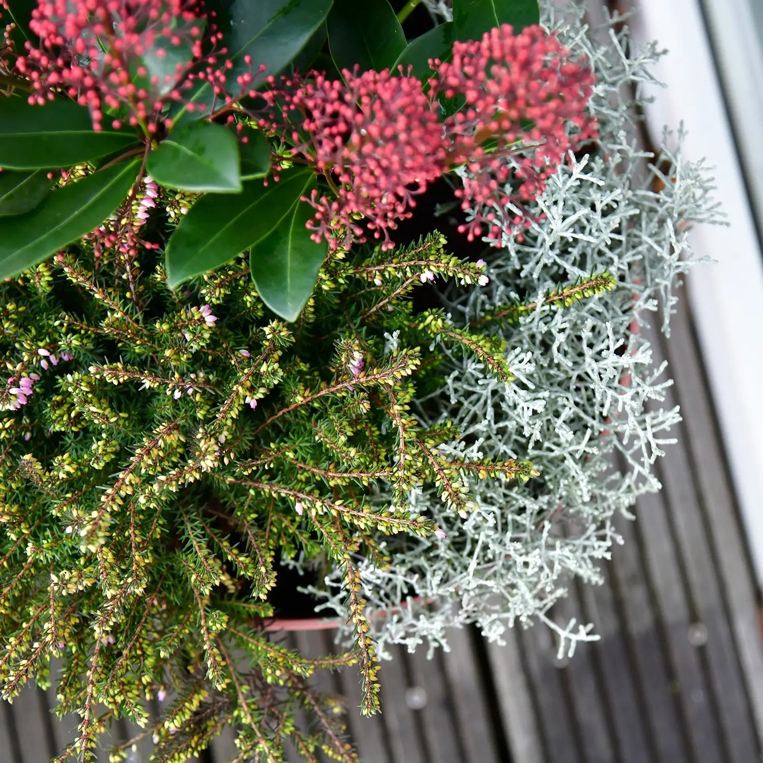 Das Dreierset aus winterharten Balkonpflanzen kann perfekt zusammen in einen Kübel gepflanzt werden und so vor die Haustür oder auch auf den Balkon gestellt werden. Die hohe Skimmia ist das Highlight in der Kombi. Bestelle dir gleich Pflanzkübel und Erde dazu und die Bepflanzung wird zum Kinderspiel.
