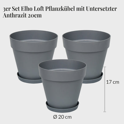 3er Set Elho Loft Pflanzkübel mit Untersetzer 20cm