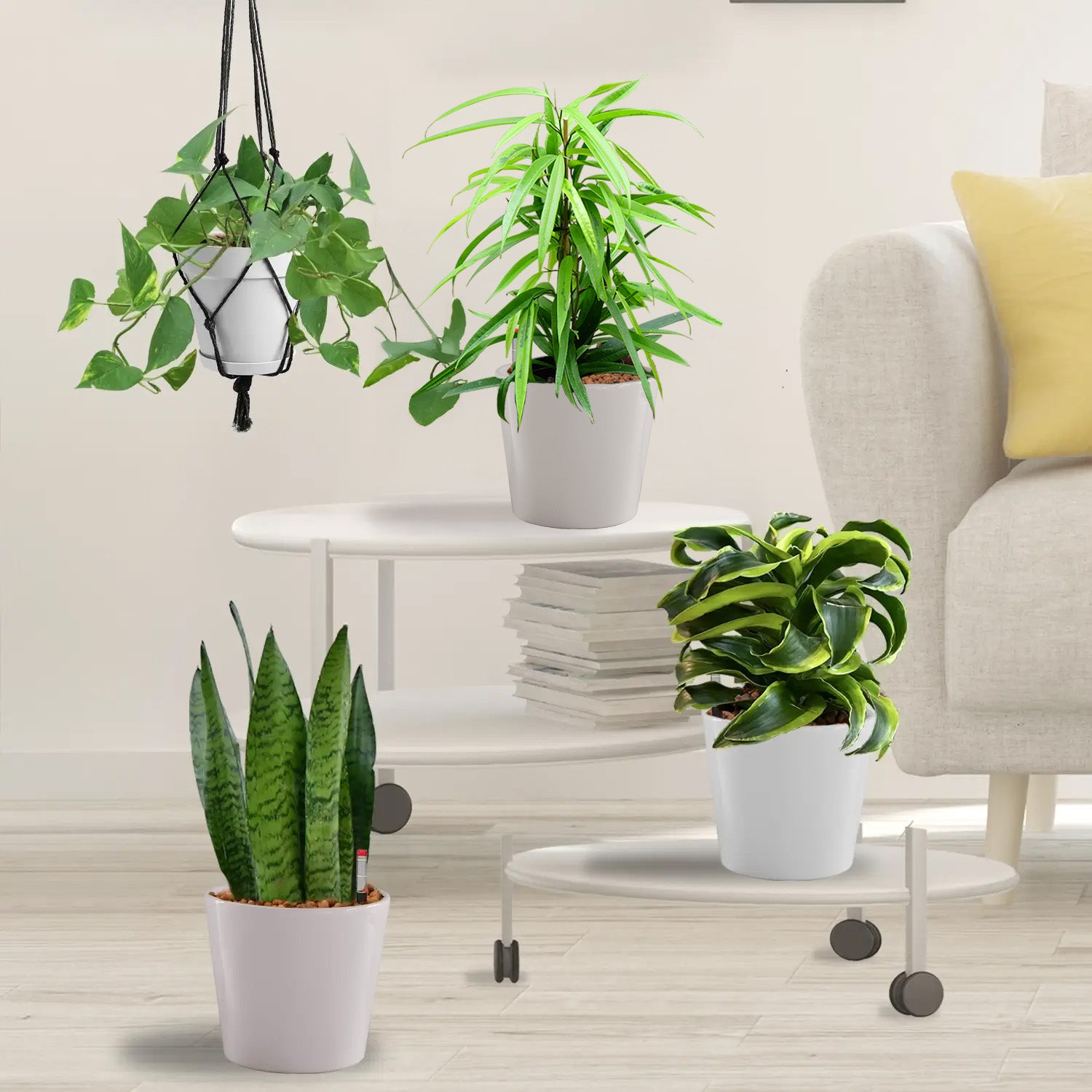 Mit den vier Pflanzen wird dein Wohnzimmer nachhaltig grün, denn diese Pflanzen werden mit Sicherheit lange bei dir leben. Denn mit dem praktischen Wasserstandsanzeiger der Hydropflanze hast du das Gießen im Griff und kannst (fast) nichts falsch machen.
