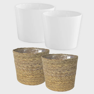 Dieses trendige Übertopf-Set haben wir dir passend zur 4er Pflanzenbox mit vier Hydrokultur Pflanzen zusammen gestellt. Die Töpfe sind eine Mischung aus Keramik und Seegras. Modern und doch klassisch ist die Kombination aus Tara und Korb ein passendes Accessoire für einen natürlichen und warmen Einrichtungsstil. Dank eines Topfeinsatzes im Seegraskorb sind beide Töpfe 100% wasserdicht und passen perfekt zu der Topfgröße der Hydrokulturpflanzen.