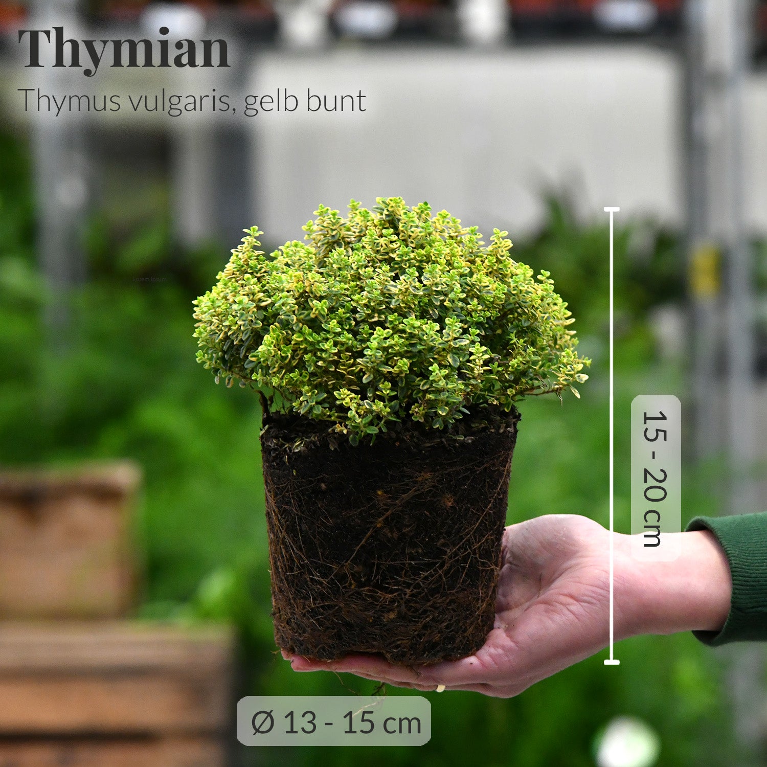 1 x Thymus vulgaris, gelb bunt Topf: 13-15cm, Höhe: 15-20cm