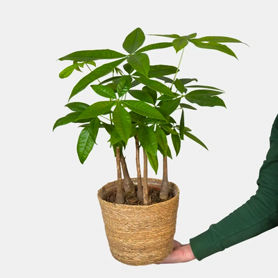 Diese Palme macht einfach glücklich, weil sie unkompliziert ist, schnell wächst und mit ihren gefingerten Blättern ein bisschen den Stil eines echten Baumes mitbringt. Besonders ist auch der geflochtene Stamm. Pflanze deinen ersten Baum in deiner Wohnung und genieße das Leben mit der Glückskastanie.
