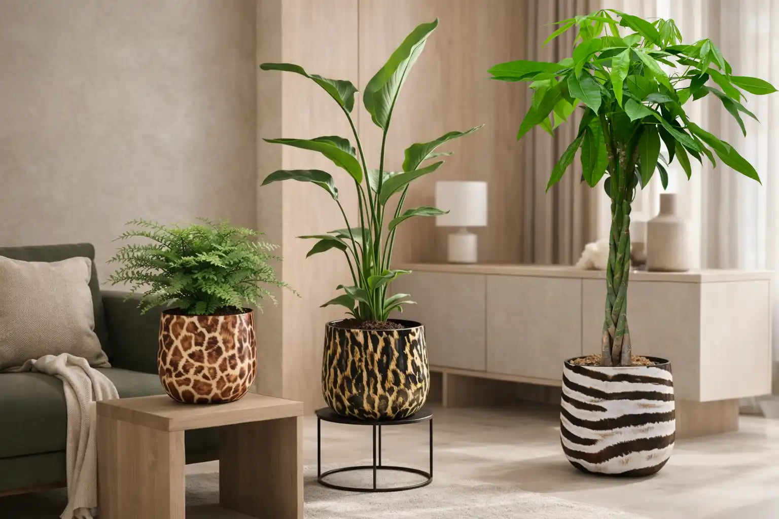 Unsere Animal-Print-Töpfe vereinen ausdrucksstarkes Design mit natürlichen Farben – perfekt für alle, die Pflanzen stilvoll in Szene setzen möchten.