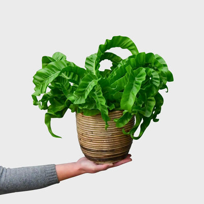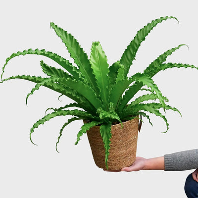Dieser ungiftige Nestfarn ist ein wahrer Wirbelwind. Die Blätter wachsen tatsächlich wie in einem Strudel und drehen sich dabei. Sein Blatt ist ziemlich fest und daher nicht so sensibel wie andere Farne und perfekt für Einsteiger geeignet. Außerdem wird das große Blatt von Katzen nicht so häufig angeknabbert.