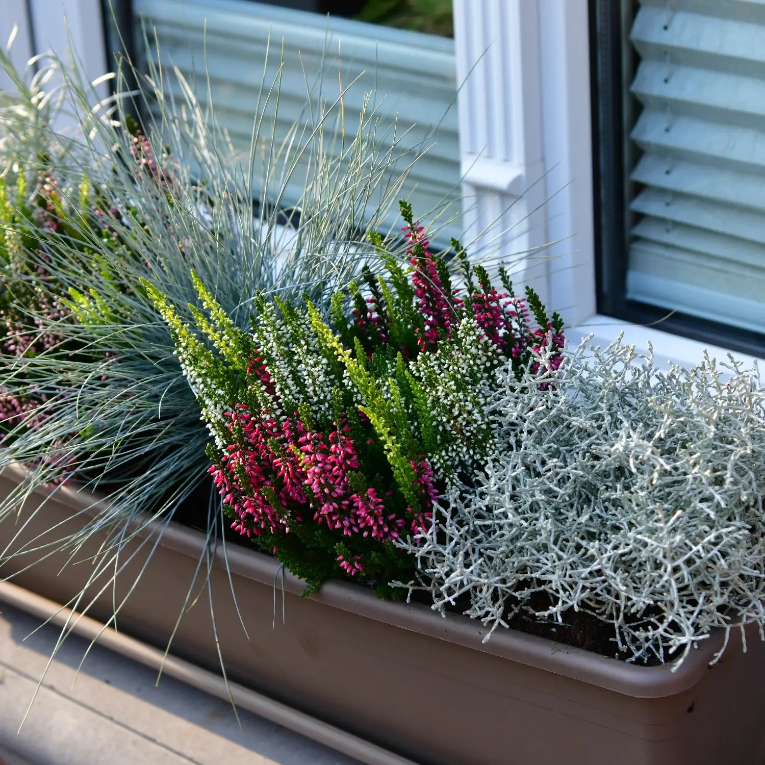 Mit dem Set aus Pflanzen, Balkonkasten und BioErde haben wir dir eine Dekoration für den Herbstbalkon zusammengestellt, bei der alles zusammen paßt. Trendige, silberlaubige Herbstpflanzen mischen sich mit lila Heidepflanzen. Die Pflanzmischung hält über den Winter bis ins kommende Frühjahr und verlangt nicht viel Aufmerksamkeit. Perfekt für Einsteiger und alle, die wissen, was gut ist.