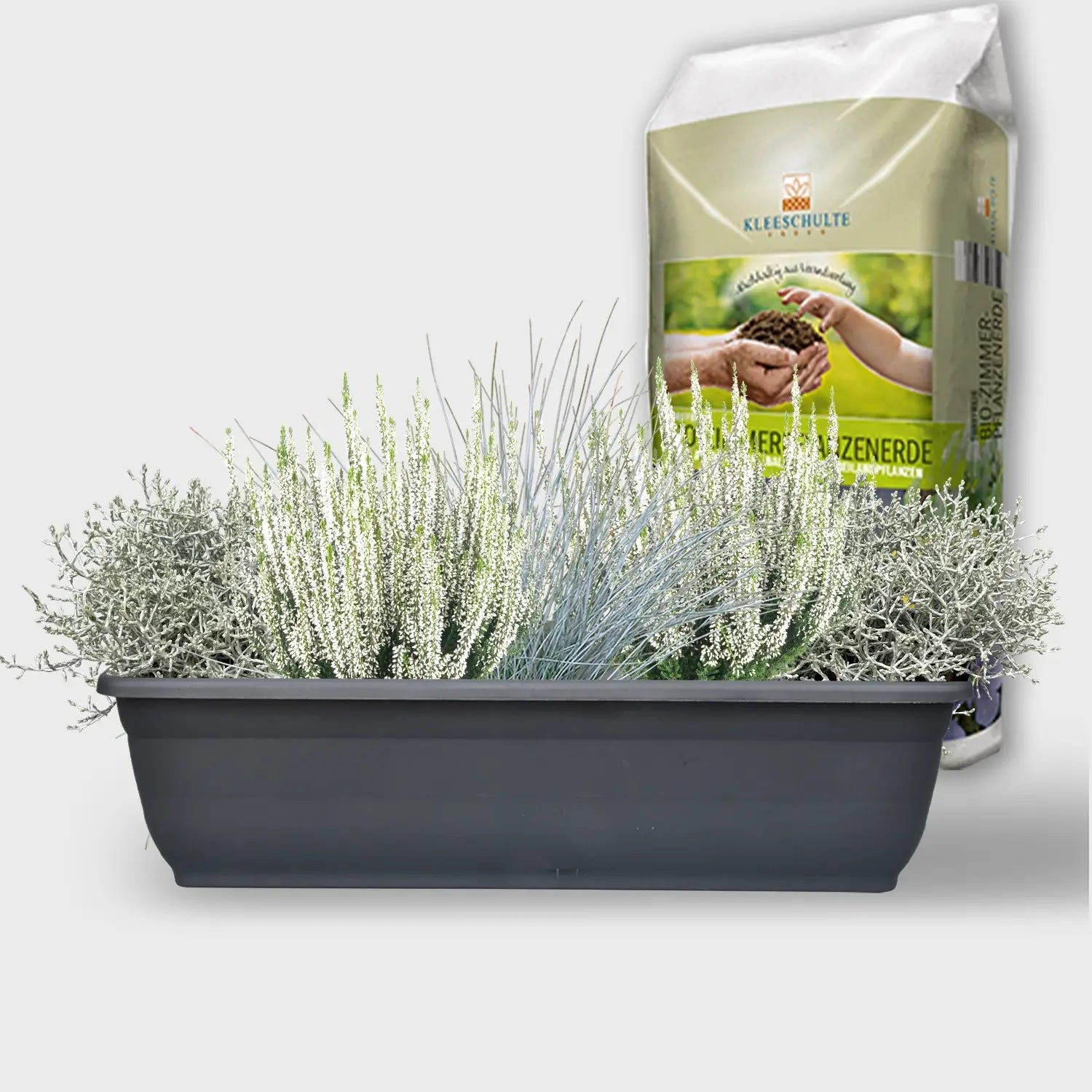 Mit dem Set aus Pflanzen, Balkonkasten und gratis BioErde haben wir dir eine Dekoration für den Herbstbalkon zusammengestellt, bei der alles zusammen paßt. Trendige, silberlaubige Herbstpflanzen mischen sich mit weißen Heidepflanzen. Die Pflanzmischung hält über den Winter bis ins kommende Frühjahr und verlangt nicht viel Aufmerksamkeit. Perfekt für Einsteiger und alle, die wissen, was gut ist.