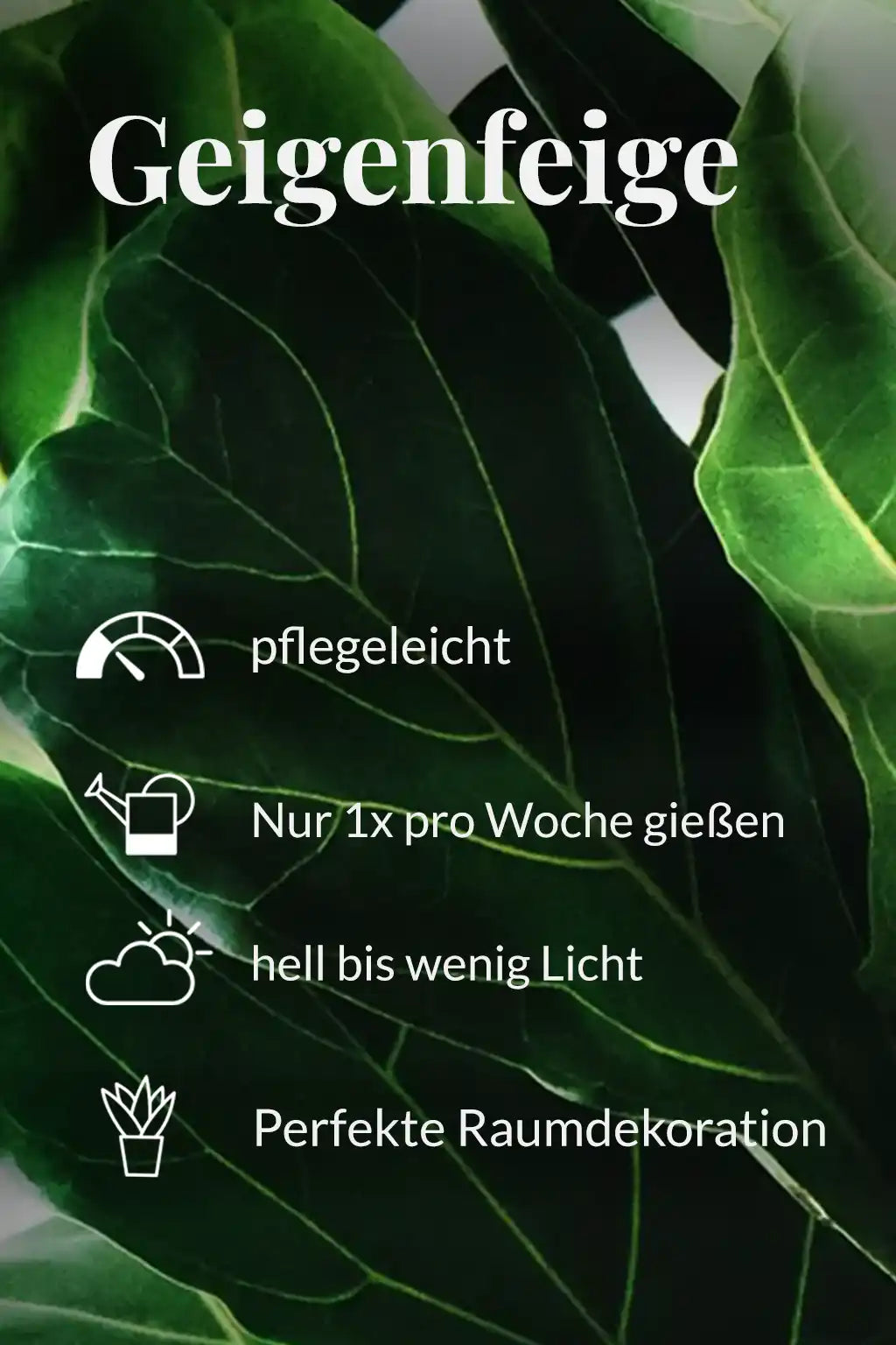 Die Geigenfeige ist eine echte Trendpflanze und beeindruckt mit den großen, etwas gewellten Blättern. Im großen Topf wächst sie schnell weiter ist super für die Raumdeko als Bodenpflanze oder auf einem Hocker zu gebrauchen. Mit einem hellen Standort und regelmäßigem Dünger wird sie schnell dein Vorzeige Pflänzchen.