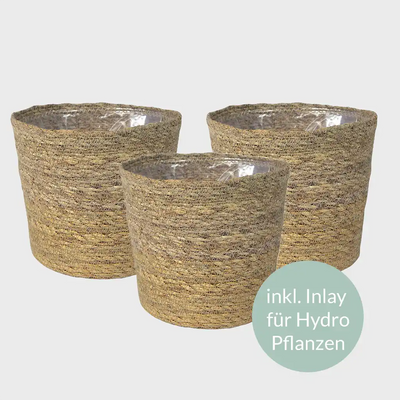 3er Übertopfset Hydro Seegraskorb Natur 17cm mit Hydroeinsatz
