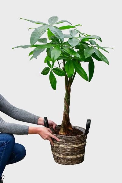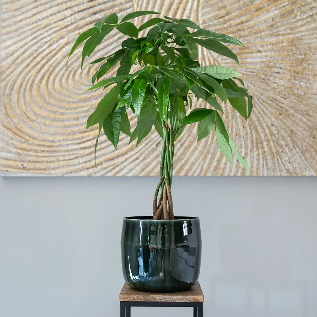 Die Pachira macht einfach glücklich, weil sie unkompliziert ist, schnell wächst und mit ihren gefingerten Blättern und dem geflochtenen Stamm, ein bisschen den Stil eines echten Baumes mitbringt. Genieße deine Glückskastanie auch zusammen mit deiner Katze, denn die Pachira ist ungiftig und wird nicht so schnell angeknabbert.