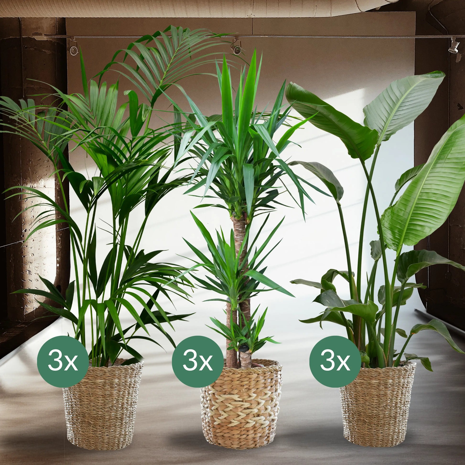 Palettenset Palmen: 9XXL Büropflanzen in Seegraskörben