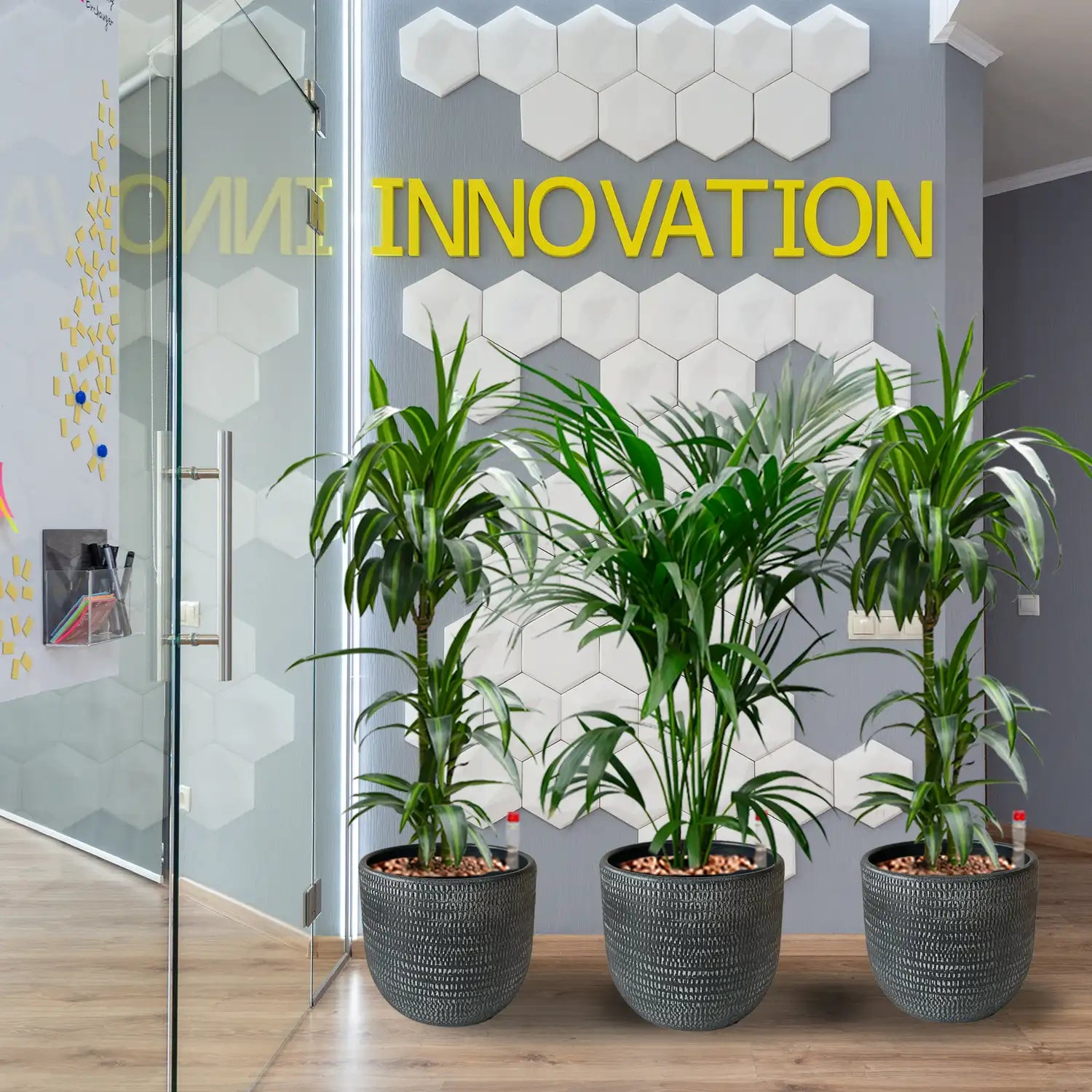 Hydrokultur macht Pflanzen im Büro pflegeleicht, denn der Wasserstandsanzeiger zeigt, wann die Pflanzen gegossen werden müssen. Durch das Wasserdepot in den Töpfen sind die Pflanzen immer bestens versorgt und bleiben lange schön.