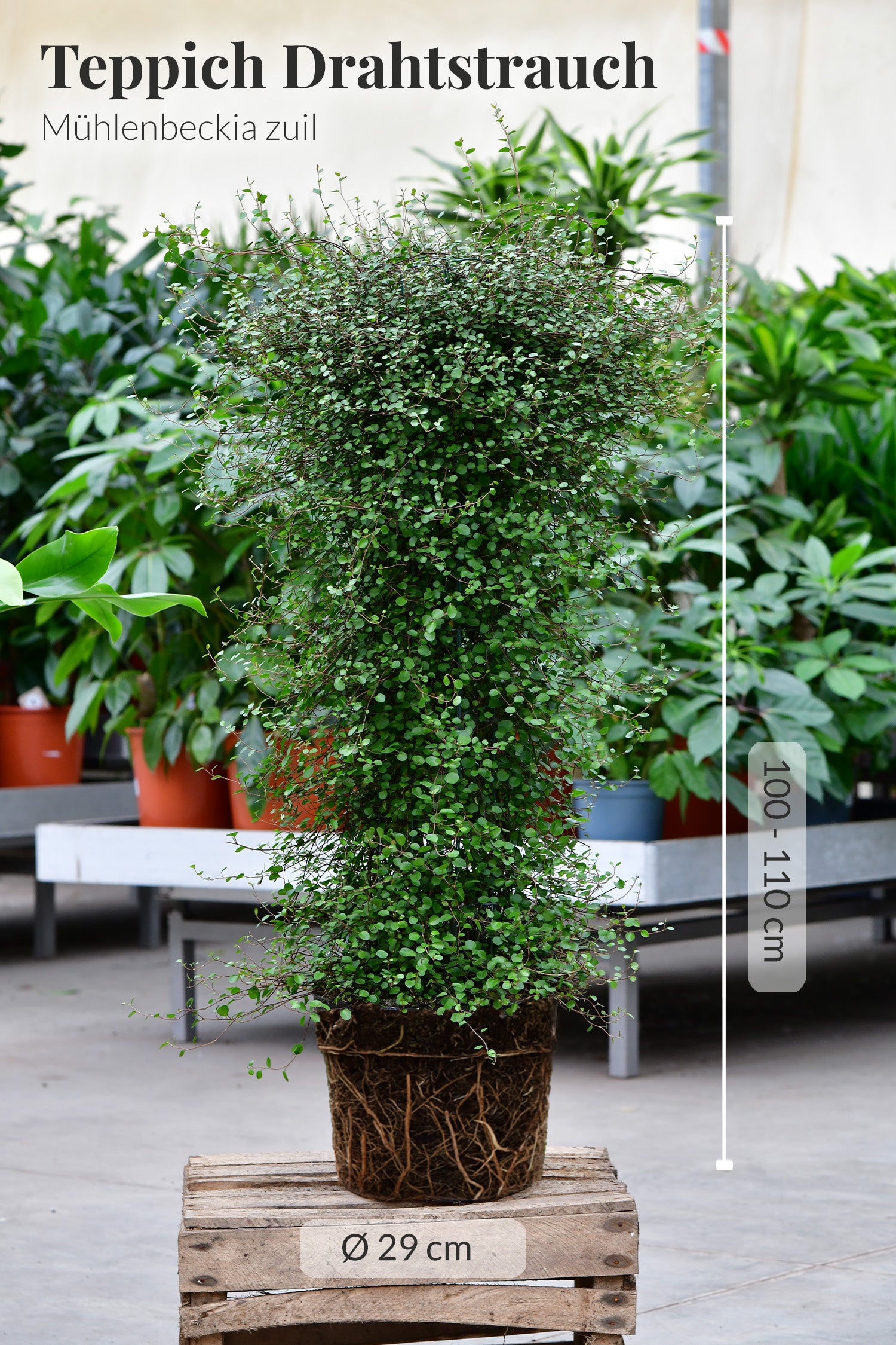 1x Mühlenbeckia zuil, Säule Topf: 29cm, Höhe: 100-110cm