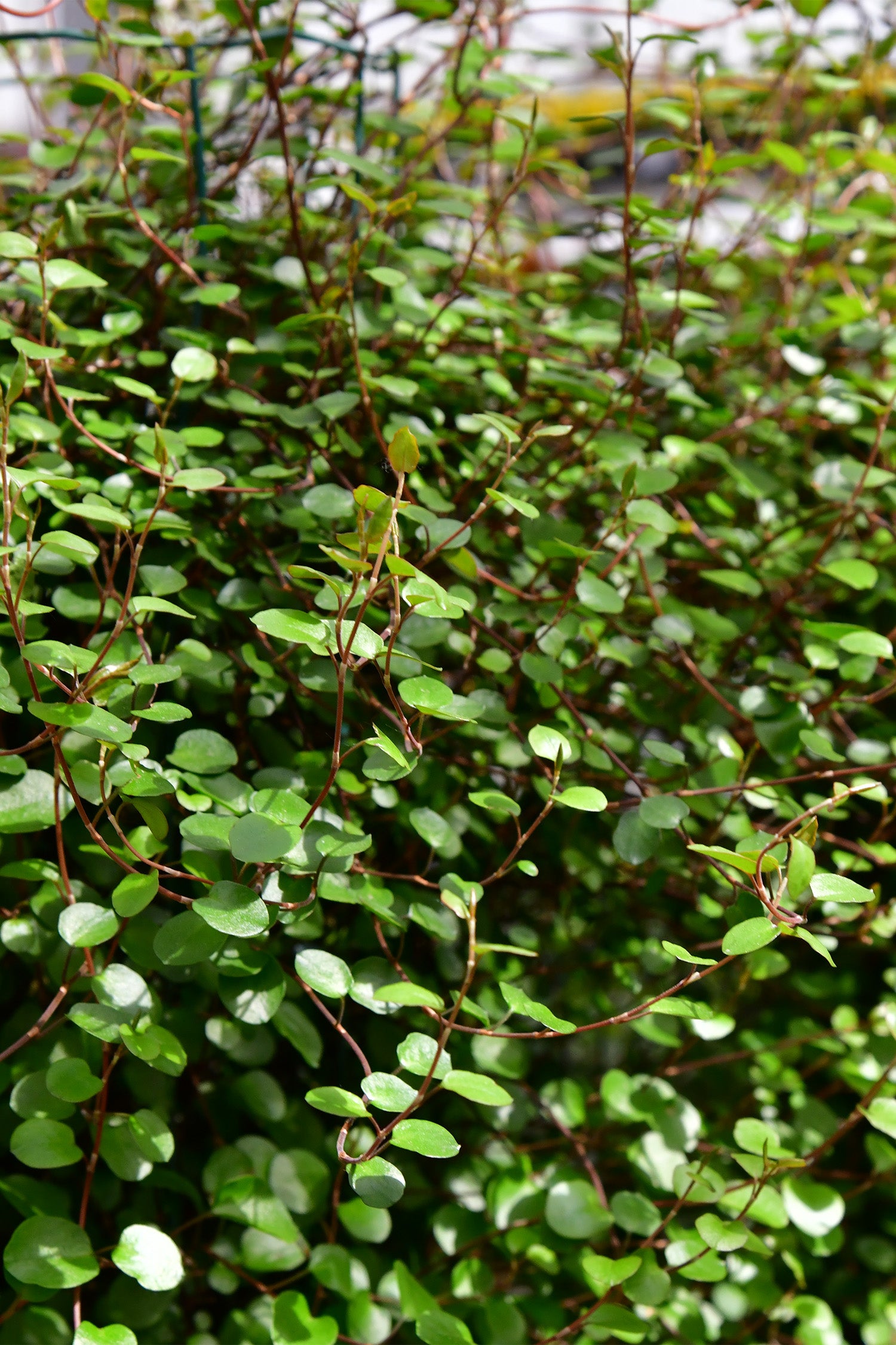 Diese grüne Säule aus dem Drahtstrauch alias Mühlenbeckia ist eine toller Sichtschutz und dabei komplett unkompliziert. Die pflanze kann auch im Schatten stehen. Sie wächst nicht zu stark, kann in Form geschnitten werden und bleibt sogar über den Winter grün.