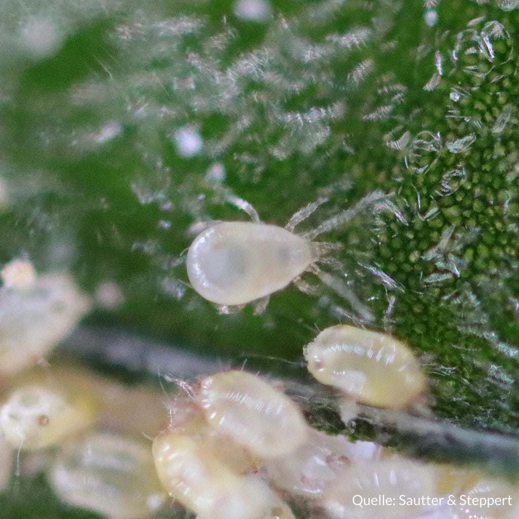 Raubmilben sind mikroskopisch kleine Spinnentiere, die sich von Schädlingen wie Thripsen, aber auch Spinnmilben, Blattläusen und
