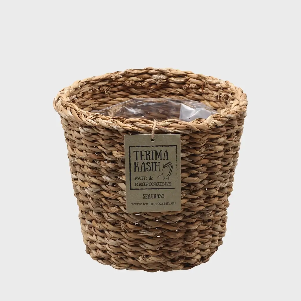 Dieser Korb aus Seegrasgeflecht passt gut zu einer natürlichen Einrichtung und bringt das Grün deiner Pflanze optimal hervor. Die einzeln geflochtenen Seegrashalme bilden gemeinsam verwebt ein feines Bild und wirken sehr natürlich. Die Körbe tragen das Label Terima Kasih, bei dem auf die faire und verantwortungsvolle Herstellung der Körbe geachtet wird.