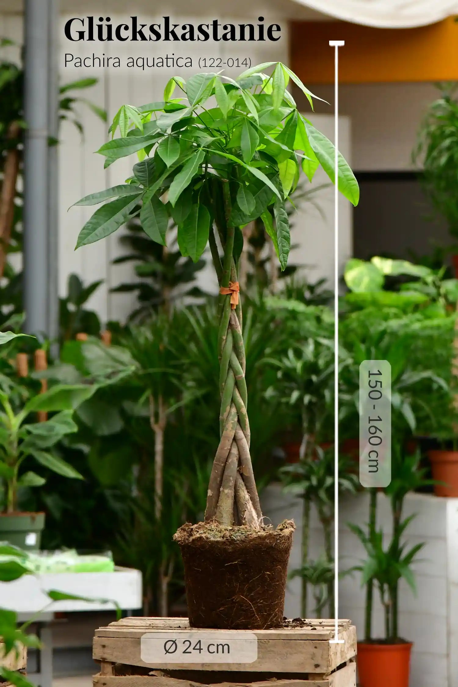 1 x Pachira aquatica, Stamm gedreht/ geflochten Topf: 24cm, Höhe: 150-160cm