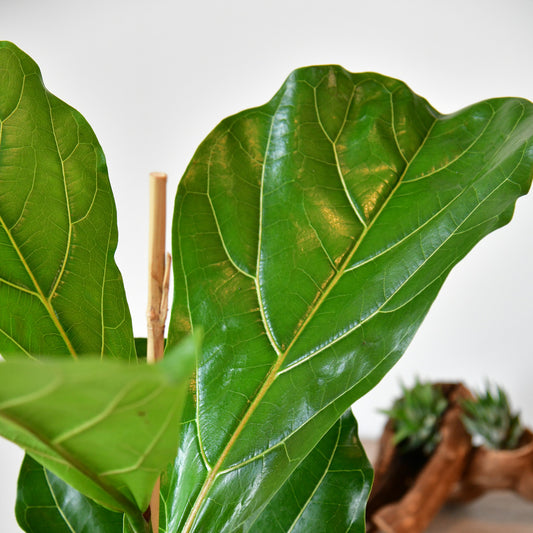 Mit ihren großen, geigenförmigen Blättern braucht die Ficus Lyrata ausreichend Platz, um sich frei entfalten zu können. Besonders im Wohnzimmer oder Büro kann sie als Solitärpflanze wunderbar zur Geltung kommen. Achte darauf, dass ihre Blätter nicht an Wände oder Möbel stoßen, damit sie ungestört wachsen kann und keine unschönen Druckstellen entstehen.