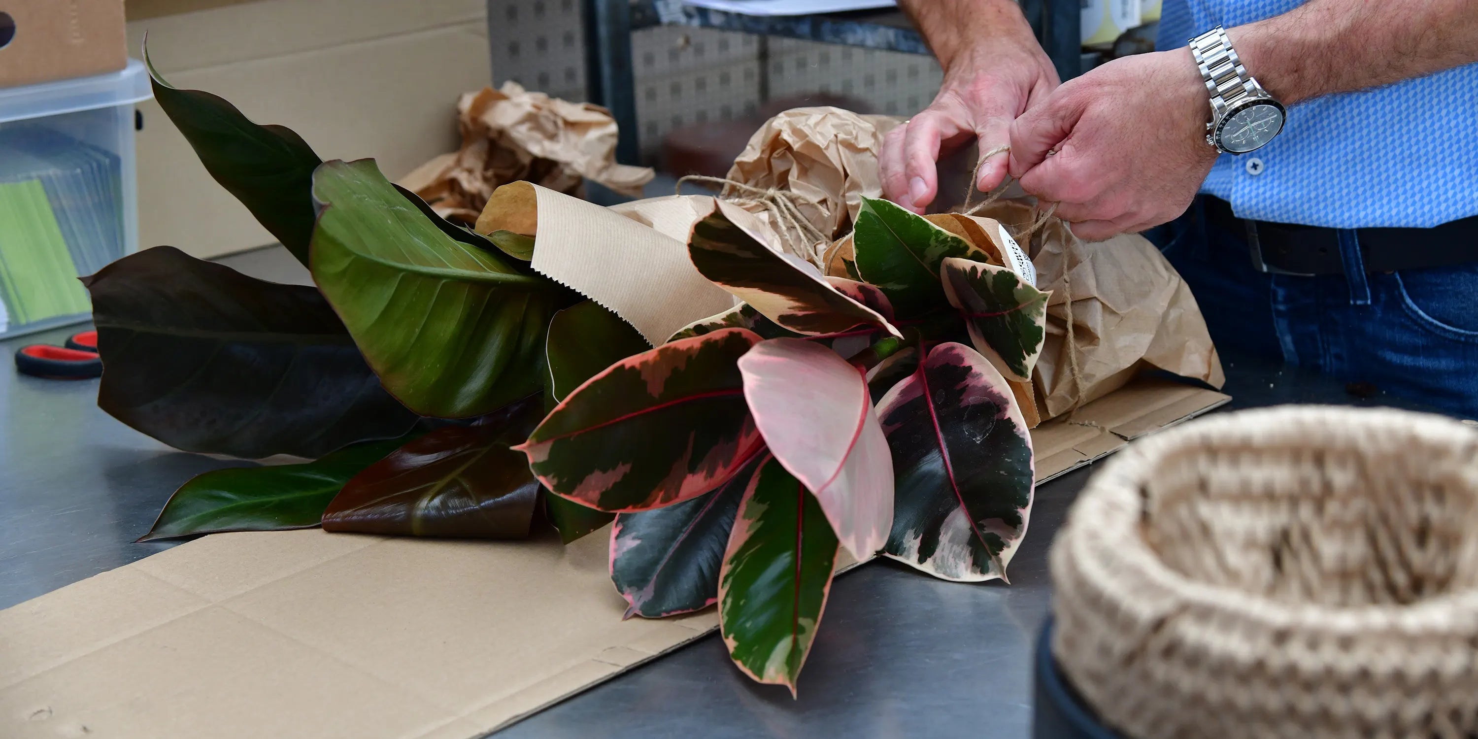 Die Pflanzen kommen ohne Plastikverpackung bei dir an. Dafür haben wir ein Verpackungssystem entwickelt, dass mit möglichst wenig Volumen Pflanzen unbeschadet zu dir bringt, auch wenn der Paketbote es mal unsanft behandelt. Auf diesem Weg sind die Pflanzen in rund 24h frisch und unbeschadet bei dir zu Hause. Dafür dass du die Pflanzen nicht mehr selber abholen muss fallen aber natürlich Kosten für Verpackungsmaterial und Versand an, die nicht unerheblich sind.