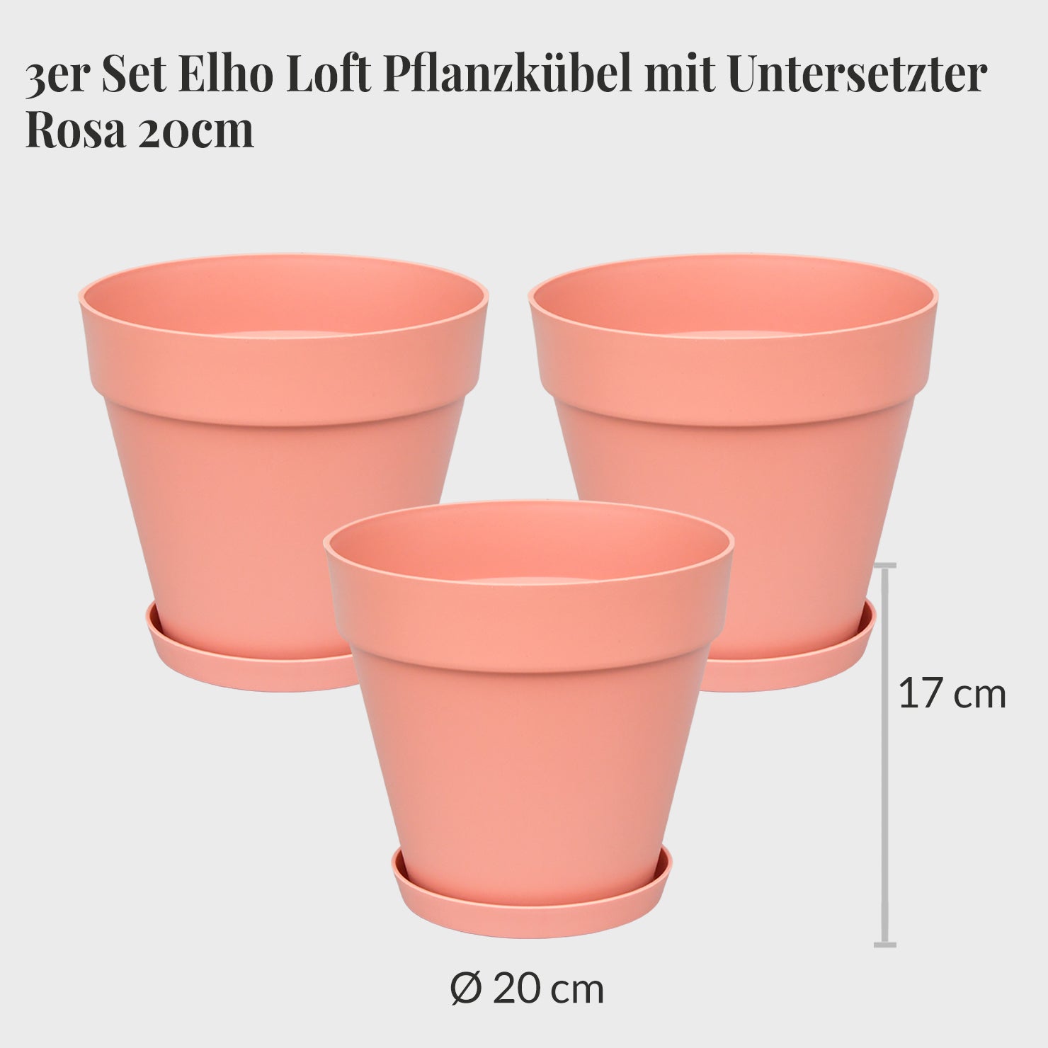 3er Set Elho Loft Pflanzkübel mit Untersetzer 20cm