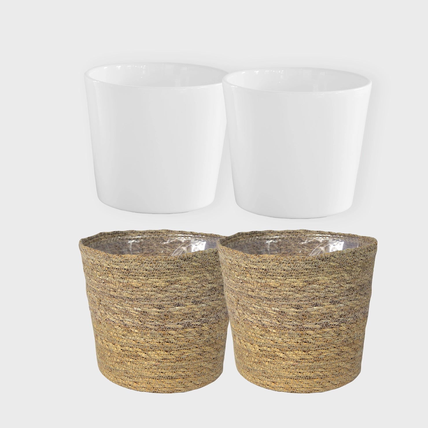 Dieses trendige Übertopf-Set haben wir dir passend zur 4er Pflanzenbox mit 2 großen und 2 mittleren Pflanze zusammengestellt. Die Töpfe sind eine Mischung aus Keramik und stylischem Bastgepflecht. Einfach mit bestellen und deine neuen Pflanzen kinderleicht in deiner Wohnung dekorieren. Erhältlich in verschiedenen Farben.