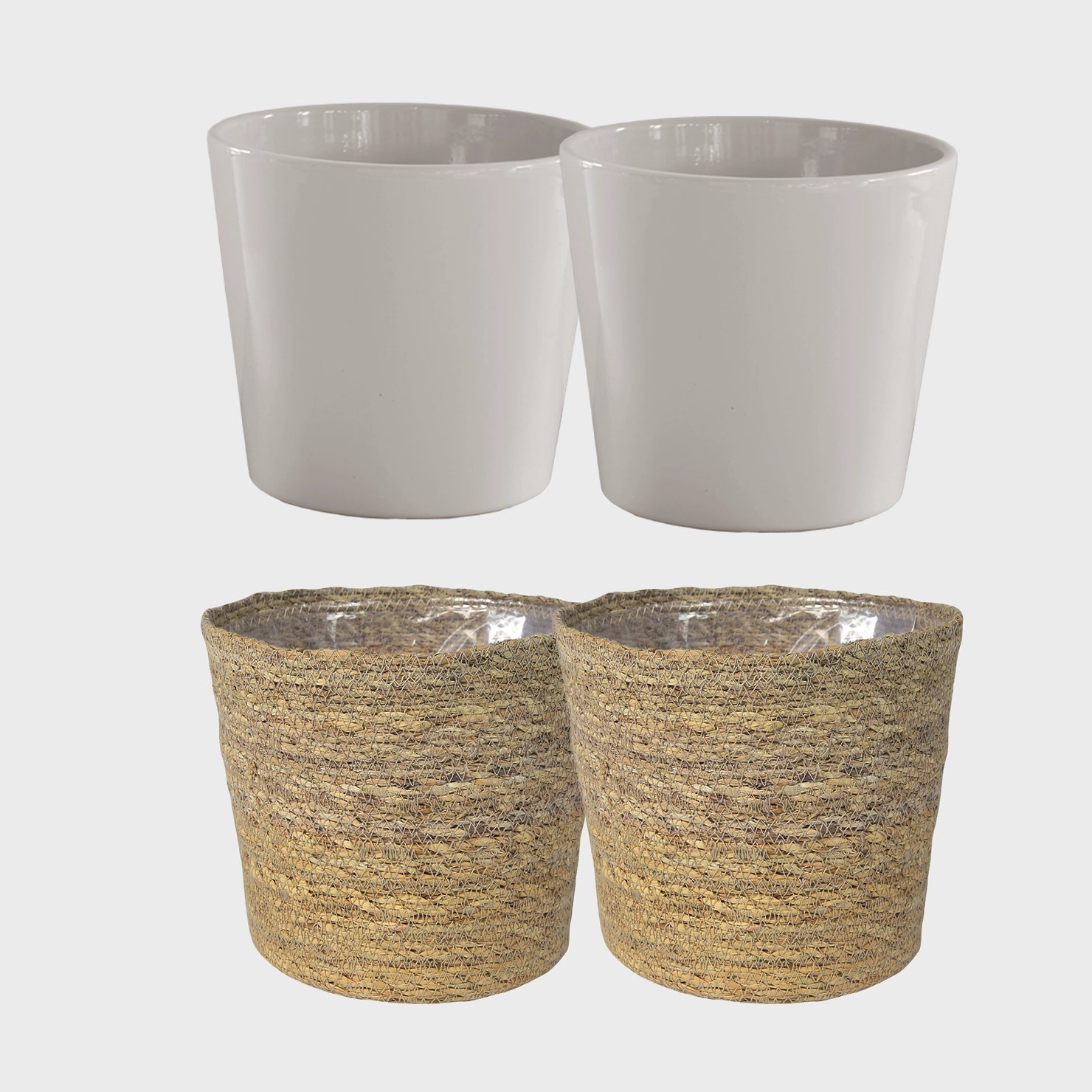 Dieses trendige Übertopf-Set haben wir dir passend zur 4er Pflanzenbox mit 2 großen und 2 mittleren Pflanze zusammengestellt. Die Töpfe sind eine Mischung aus Keramik und stylischem Bastgepflecht. Einfach mit bestellen und deine neuen Pflanzen kinderleicht in deiner Wohnung dekorieren. Erhältlich in verschiedenen Farben.