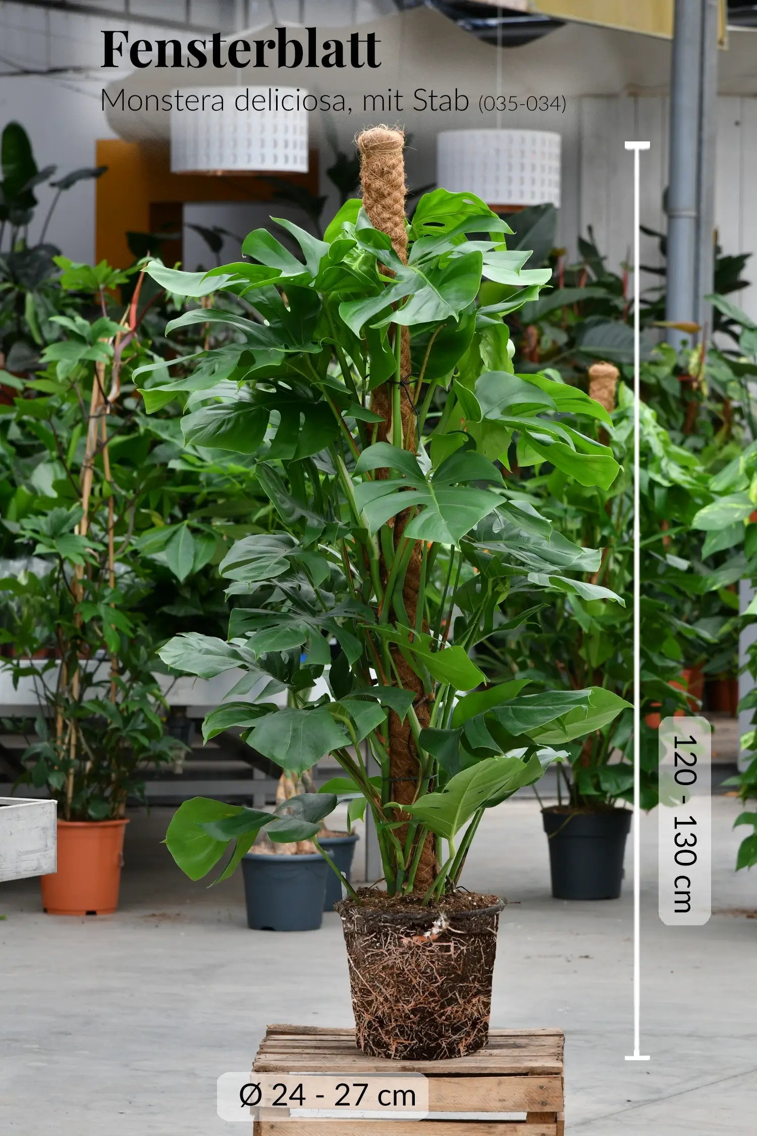 3x Monstera deliciosa, mit Stab Topf: 24-27cm, Höhe: 120-130cm