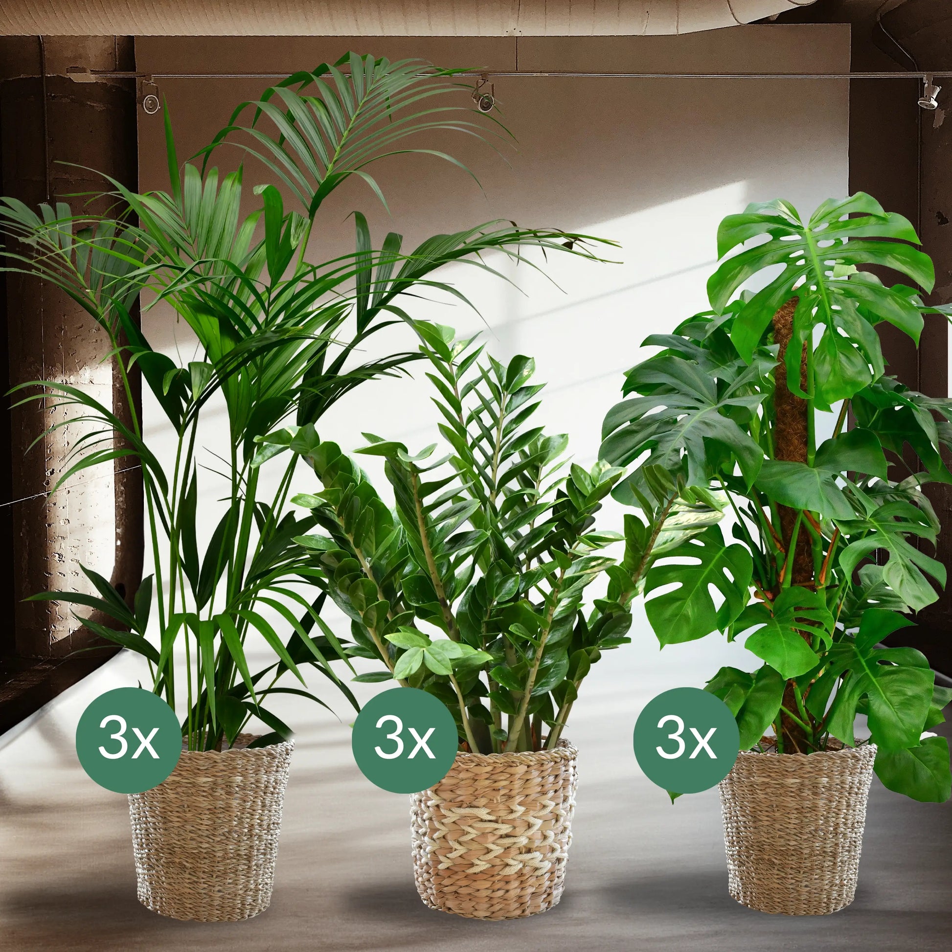 9er Set 3XXL 6XL Büropflanzen für wenig Licht in Seegraskörben