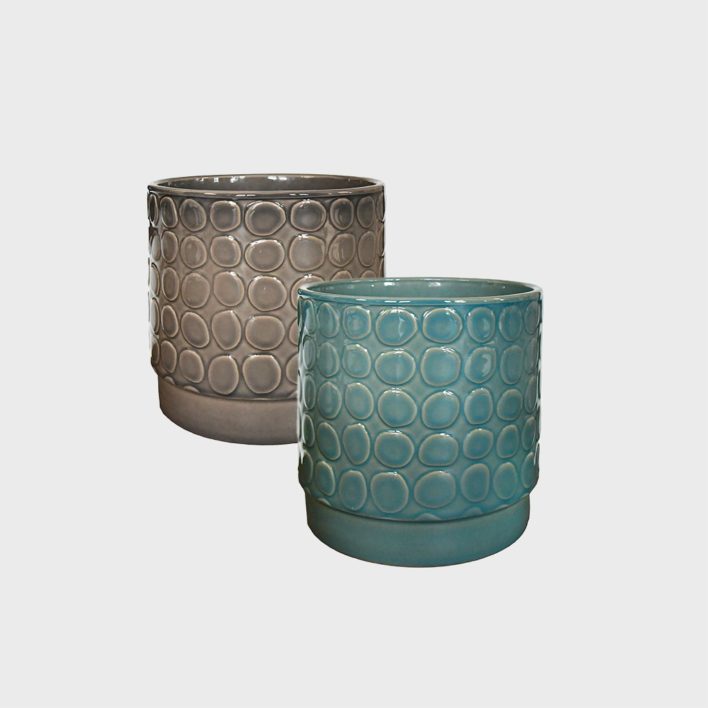Der Topf besteht aus Ton und wir hier in Europa, in den Niederlanden gefertigt. Er lässt sich sehr gut mit großen Seegrastöpfen kombinieren und ist in tollen aktuellen Farben erhältlich.