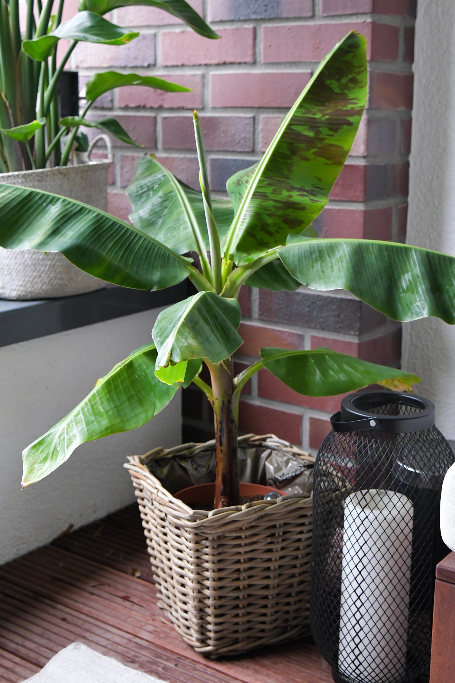 Wenn du schon immer mal eine Bananenpflanze haben wolltest, ist das der Moment wo du zugreifen solltest. Dieses fast 1 Meter große Exemplar eignet sich im Sommer super für den sonnigen Balkon. Sobald die Nachttemperatur über 10°C bleibt kannst du sie raus aus dem Wohnzimmer nach draußen bringen. Hier wächst die Pflanze richtig schön weiter und bildet viele neue Blätter und neue Triebe aus dem Boden. So hast du ganz schnell Urlaubsfeeling und grünen Sichtschutz auf deinem Balkon.