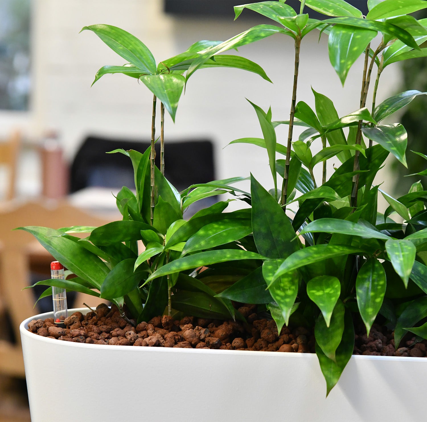 Hydrokultur macht Pflanzen im Büro pflegeleicht, denn der Wasserstandsanzeiger zeigt, wann die Pflanzen gegossen werden müssen. Durch das Wasserdepot in den Töpfen sind die Pflanzen immer bestens versorgt und bleiben lange schön.