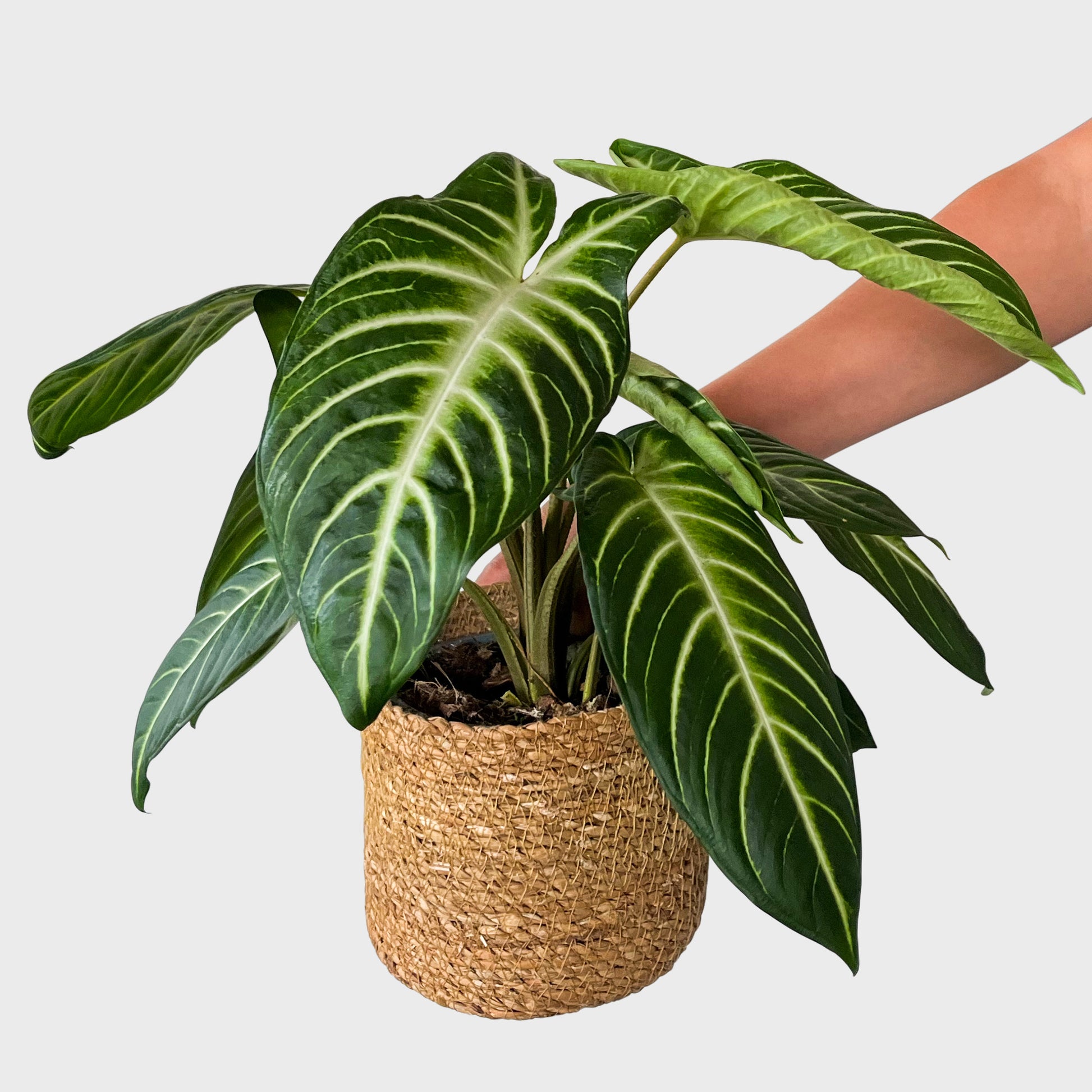 Mit Blättern wie Engelflügel zieht die Caladium lindenii Angel Wings jeden Blick auf sich. Die Blätter sind für einen Kaladium ungewöhnlich fest und daher ist sie auch nicht so empfindlich wie viele ihrer Artgenossen.