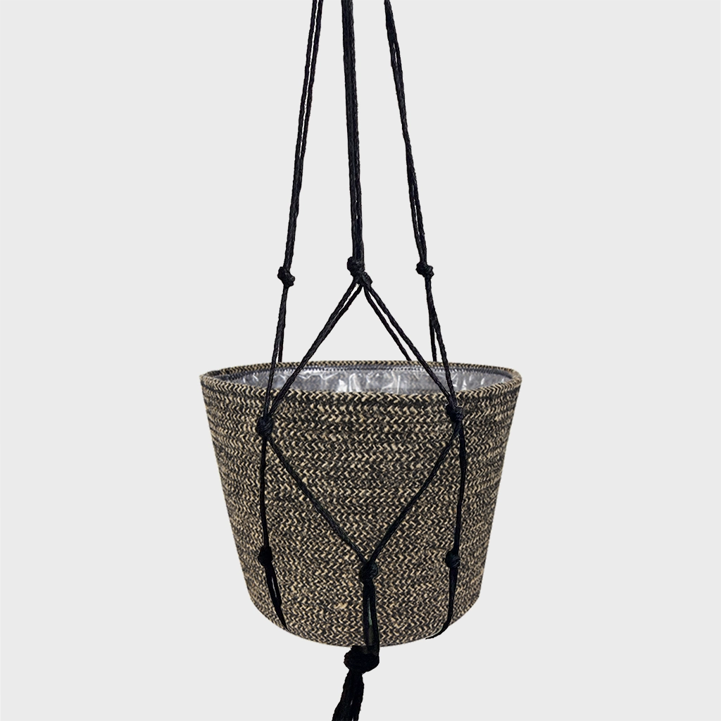 Seegrastopf Selin mit Makramee Hänger Schwarz