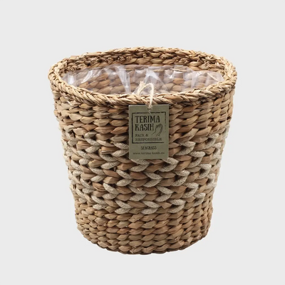 Hinweis: Der Übertopf ist mit Folie ausgekleidet, es sollte jedoch nicht dauerhaft Wasser im Korb stehen, da dieser nicht 100% wasserdicht ist.